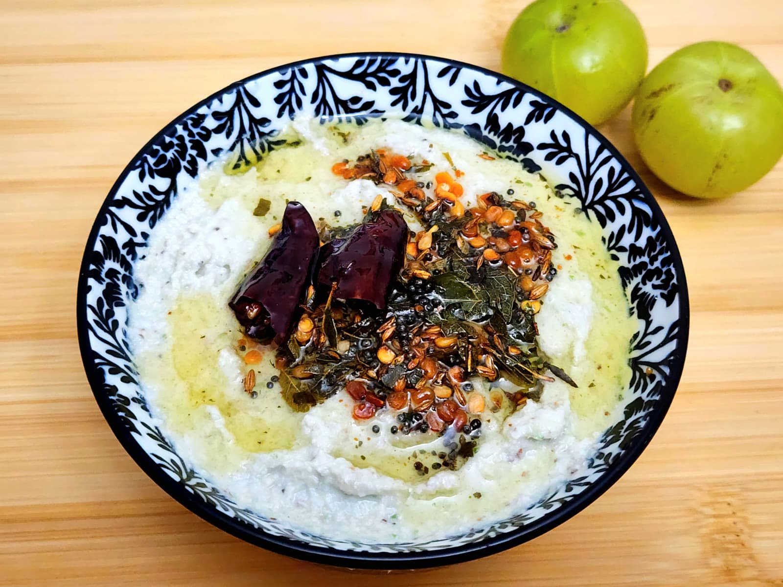 - Blend amla, coconut, green chilies, curd, and salt to a smooth paste.